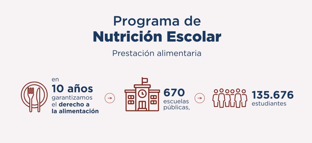 - Programa de Nutrición Escolar o Comedores Escolares implementado desde 2016 y que hoy alcanza a más de 164.000 estudiantes en 670 escuelas públicas.