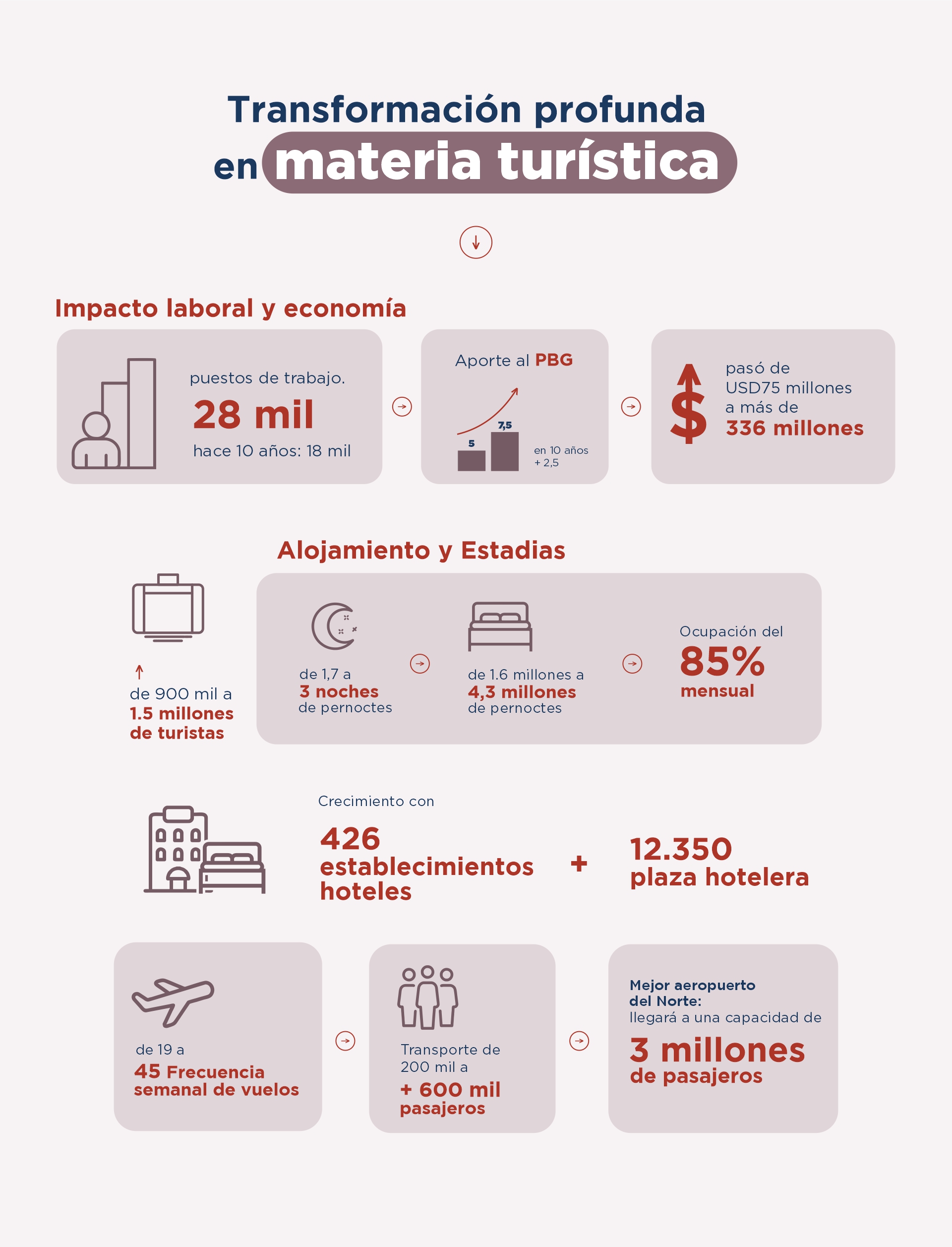 o Hasta el año 2015 se registraban 23 municipios turísticos. Actualmente, tenemos 35 municipios turísticos, un crecimiento del 52%.