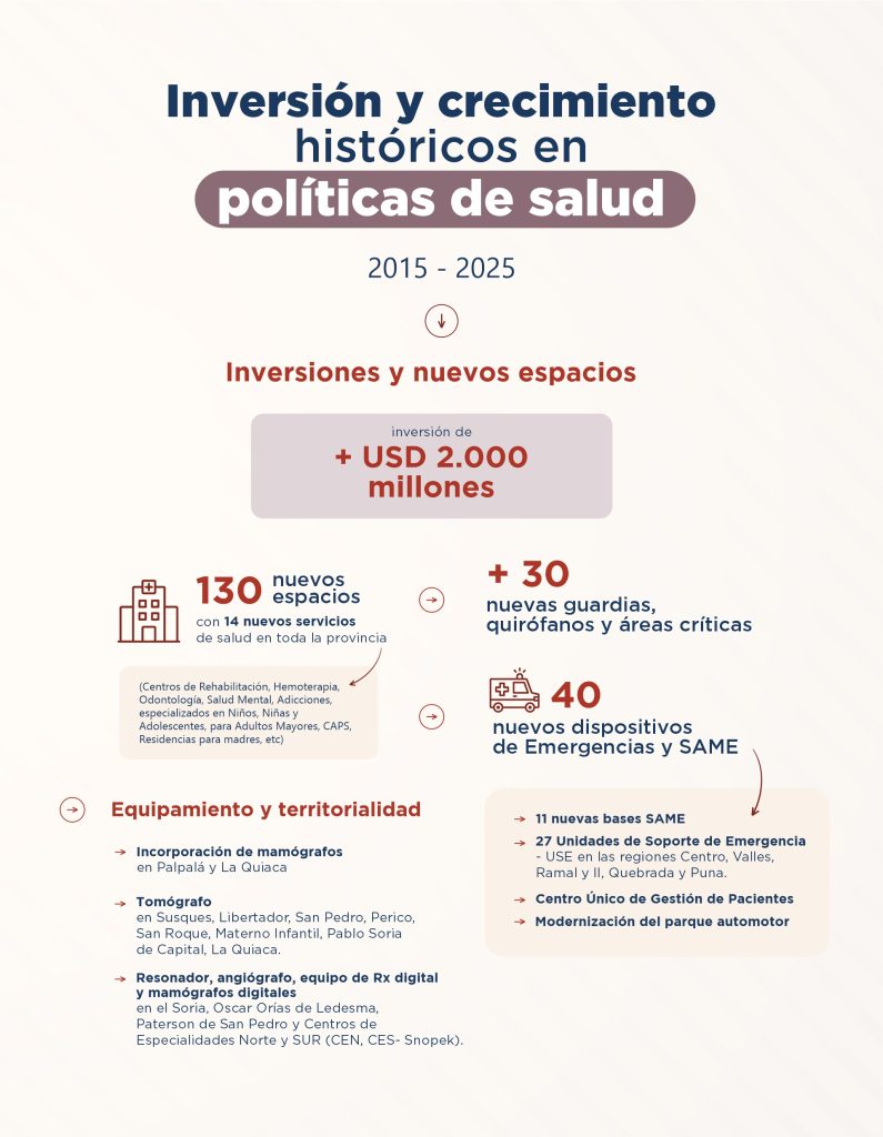 Entre 2015 y 2025, la gestión de Gobierno realizó la inversión más grande en la historia de la salud de Jujuy alcanzando en un total de: