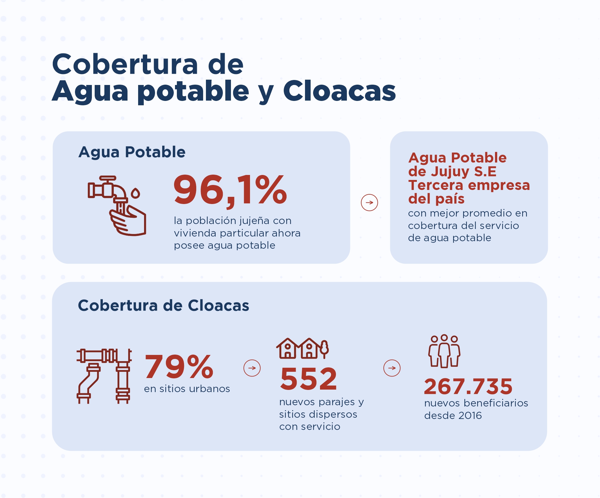 · El 96,1% de la población jujeña con vivienda particular ahora posee acceso a la red de provisión de agua pública (tercera empresa del país con mejor promedio).